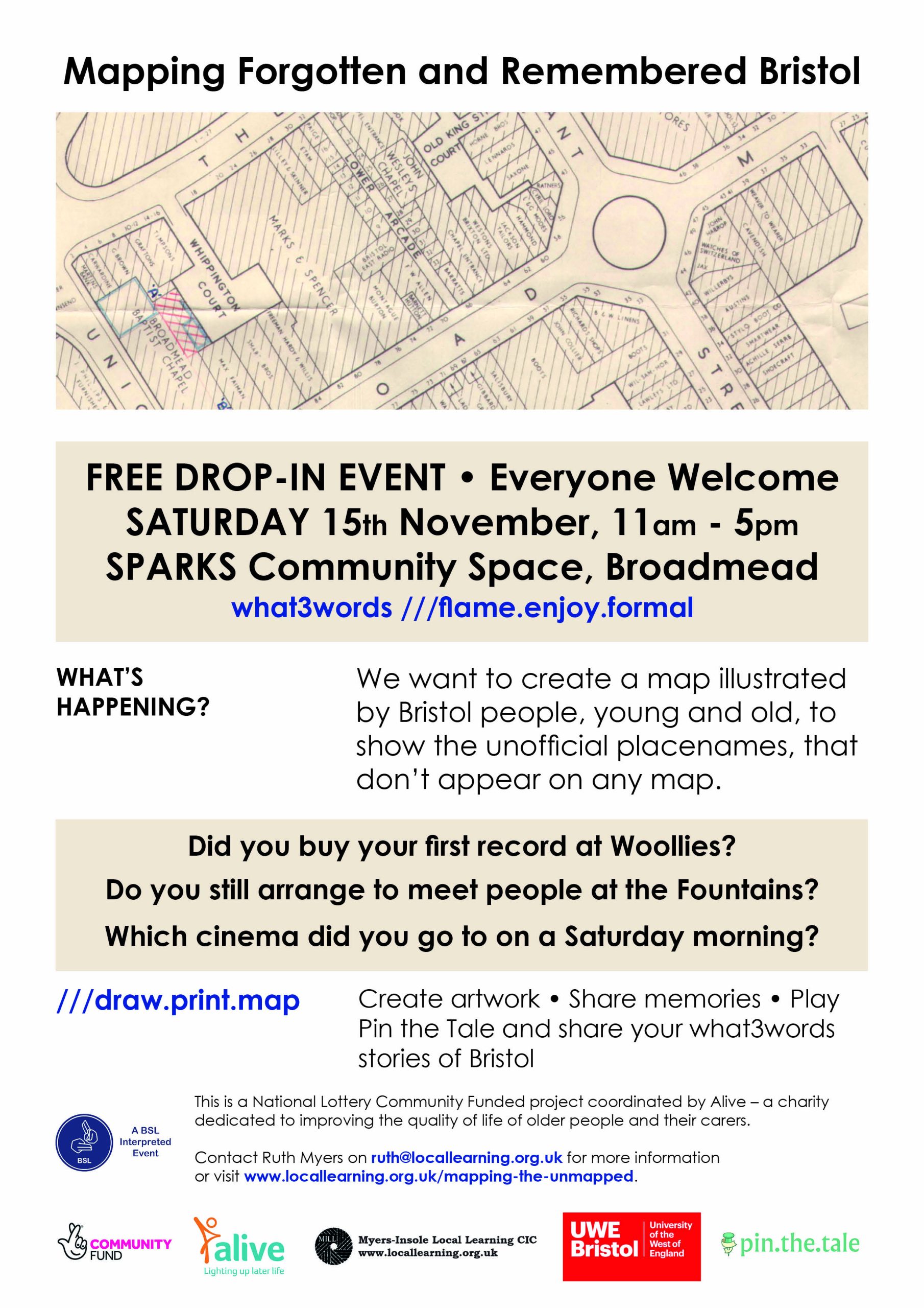 Local Learning will be 20 years old on 15th November so to celebrate we are holding a community mapping event at Sparks (the old M&S) in Broadmead.