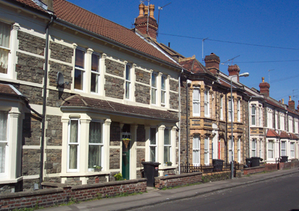 These terraced houses were built around 1890. These are built of Pennant sandstone with some limestone details. They are two storey houses.