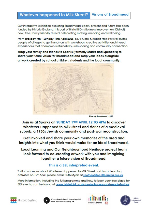 A grant from Historic England made it possible to explore Our Neighbourhood Heritage and we began with a gathering in St Pauls Library to discover together more about this pre-war Jewish quarter and the stories of those who had lived, worked and grown up there.