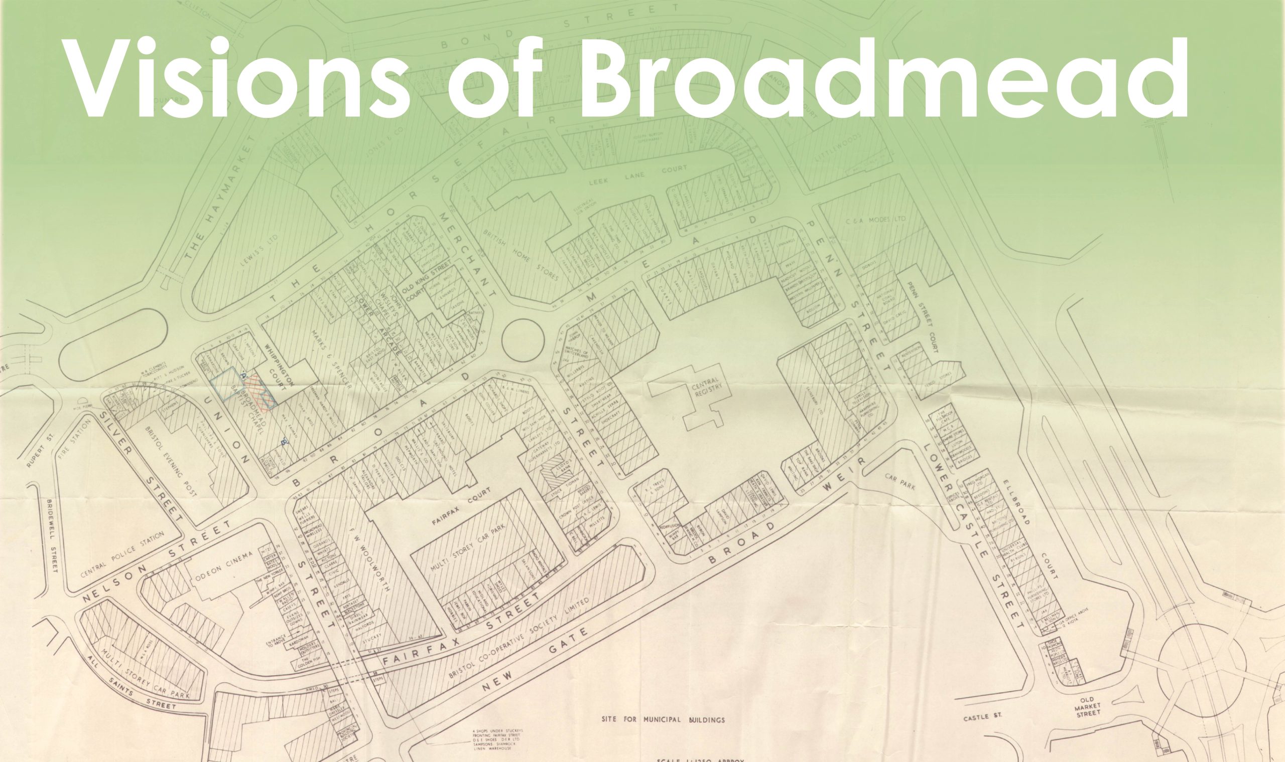 The houses, shops and streets depicted in Julius’s map were largely removed during the post war re-planning process that created the present Broadmead shopping area and associated inner ring road. This top-down approach was typical of the time, with city planners keen to forge a new future with what they felt would best serve the people of Bristol; a 1950s one-stop shopping area with a gallery of department stores intended to fulfil shoppers’ every want and need. Little thought was given to the wants and needs of the neighbourhood as their homes faced demolition and the prewar community was displaced with minimal, if any consultation.